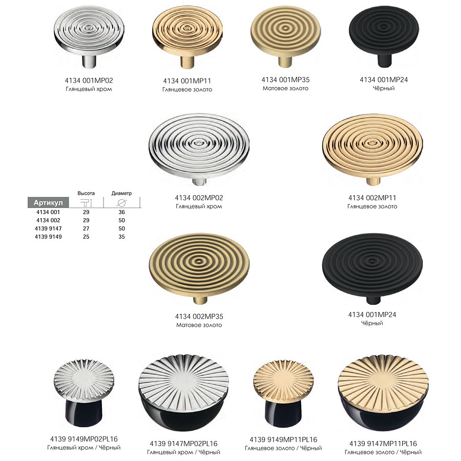 мебельная, ручка, кнопка, 4139 9147MP02PL16, глянцевый, хром, черный