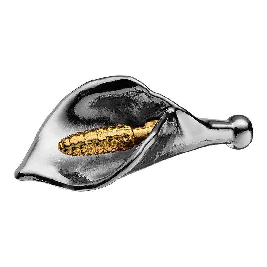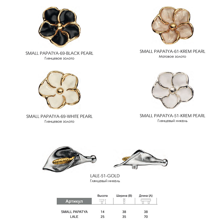 мебельная, ручка, керамика, кнопка, лилия, LALE-51-GOLD, глянцевый, никель, золото