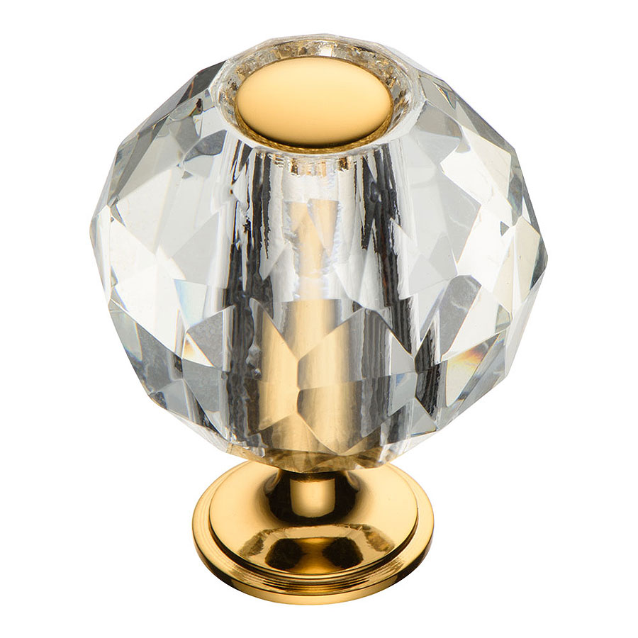 Ручка кнопка шар 0737-003-2 цвет глянцевое золото, прозрачный кристалл диаметр 38 мм