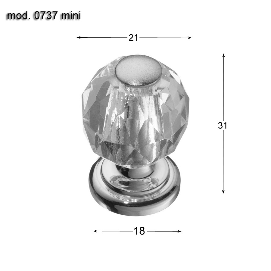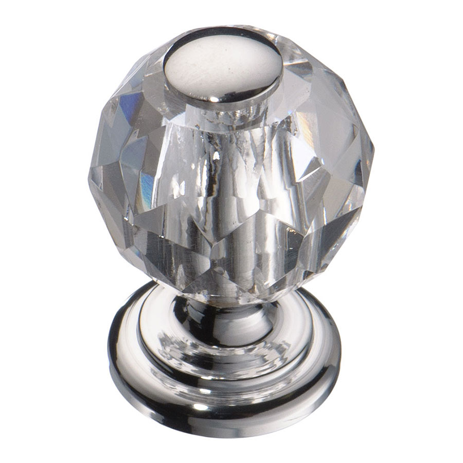 Ручка кнопка шар 0737-005-MINI цвет глянцевый хром, прозрачный кристалл диаметр 21 мм