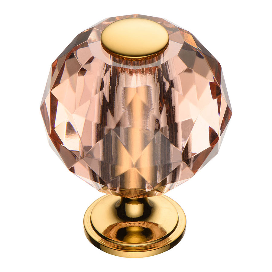 Мебельная ручка форма кнопка шар коллекция Эксклюзив модель 0737-318-2 цвет глянцевое золото, розовый кристалл горный хрусталь материал латунь производство Турция.