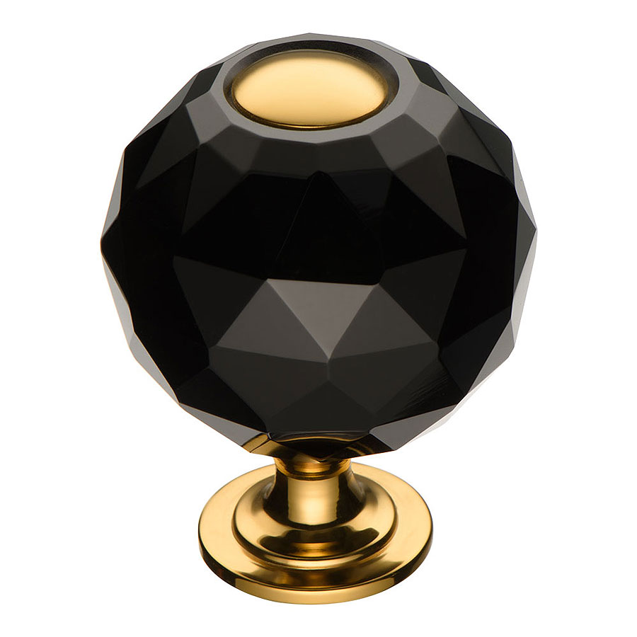 Ручка кнопка шар 0737-320-2-BLACK цвет глянцевое золото, черный кристалл диаметр 38 мм