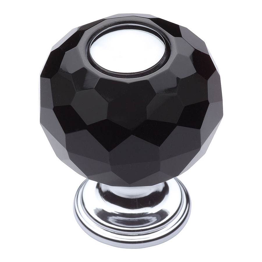 Ручка кнопка шар 0737-520-1-BLACK цвет глянцевый хром, черный кристалл диаметр 30 мм