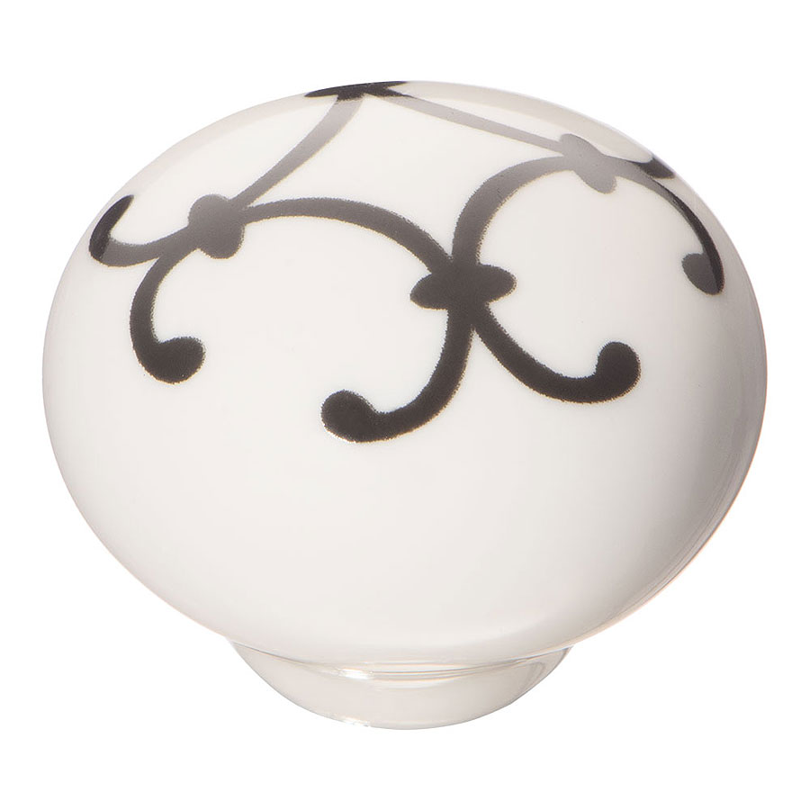 Ручка кнопка шар 3005-385 белая керамика, черный орнамент диаметр 32 мм