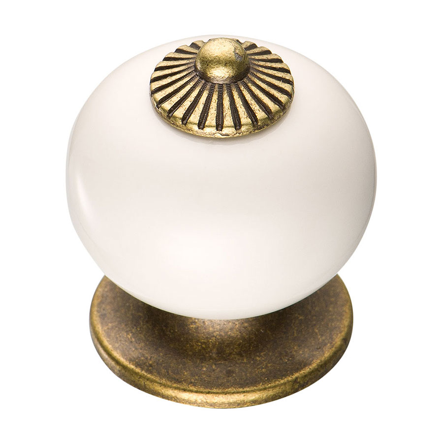 Мебельная ручка форма кнопка шар коллекция Фарфор модель 3020-40-000 цвет античная бронза, белая керамика материал цамак производство Турция.