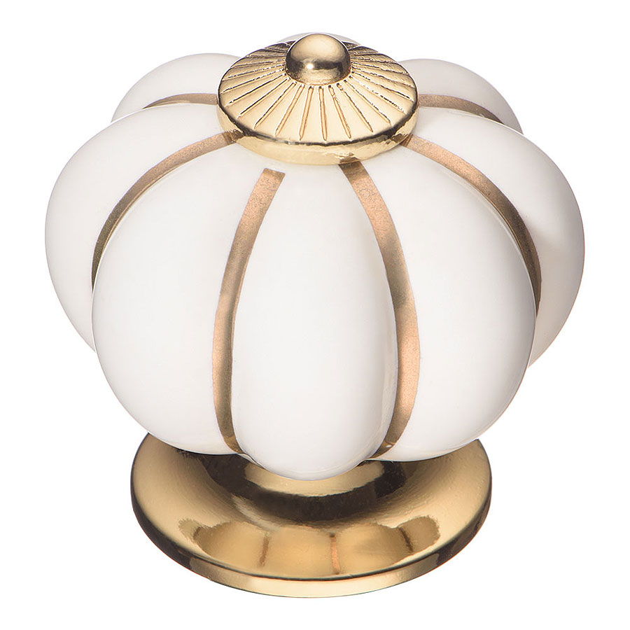 Мебельная ручка форма шар коллекция Фарфор модель S-101 GOLD WHITE отделка металла глянцевое золото, цвет керамики белый производство Турция.