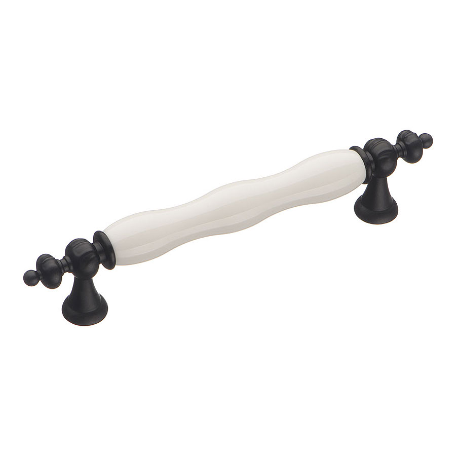 мебельная, ручка, фарфор, керамика, скоба, 1670-85-128-000, черный, белый