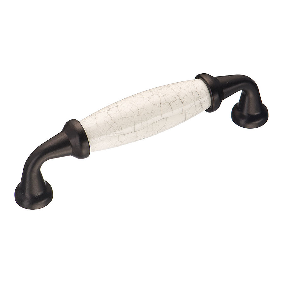 Ручка скоба 2005-85-096-08 цвет черный / белая керамика с паутинкой длина 110 мм, крепление 96 мм