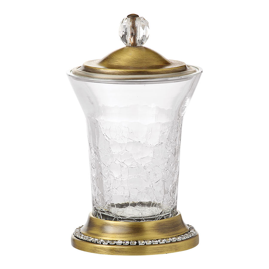 Стакан для ватных дисков 3505-75-013 цвет состаренная латунь, прозрачное стекло, кристаллы Swarovski высота 155 мм