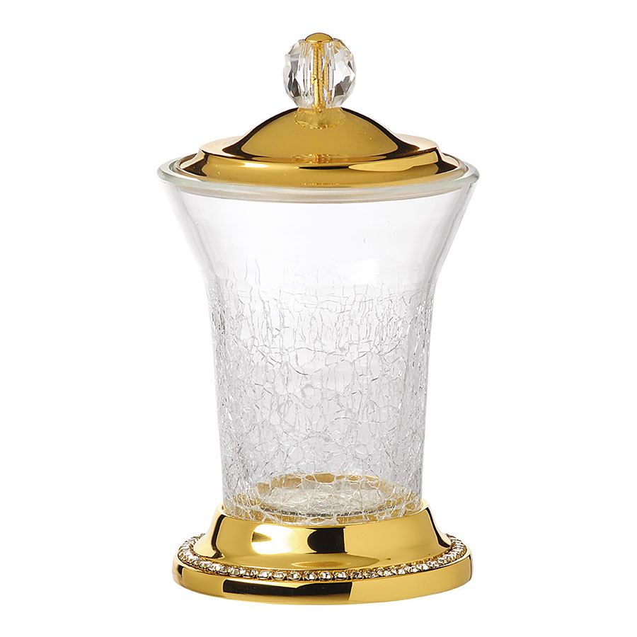 Стакан для ватных дисков 3505-75-030 цвет глянцевое золото 24К, прозрачное стекло, кристаллы Swarovski, латунь высота 155 мм