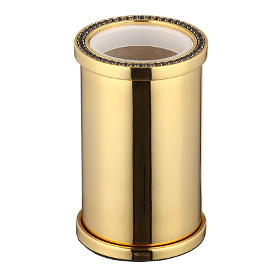 Стакан для зубных щеток 3503-78-520 цвет глянцевое золото, черные кристаллы Swarovski, стекло, латунь высота 130 мм
