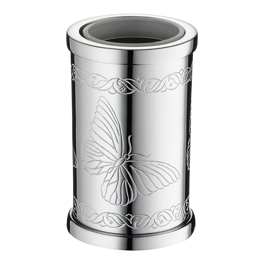 Стакан для зубных щеток 3503-8-005 цвет глянцевый хром, узор, стекло, латунь высота 130 мм