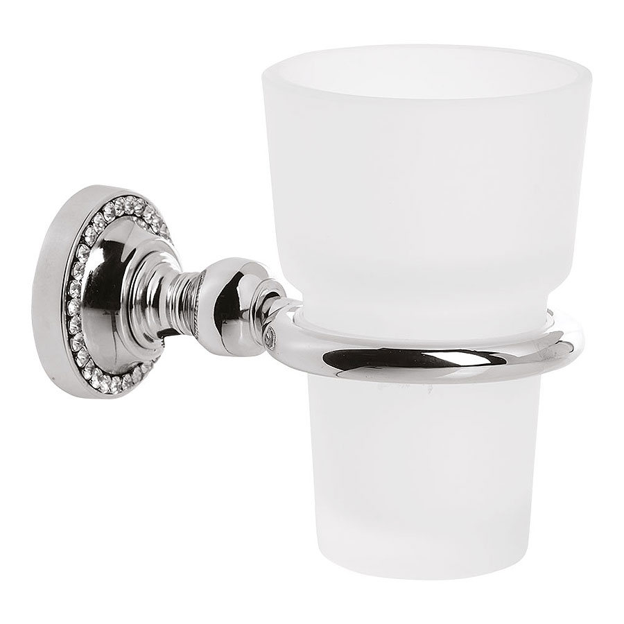 Стакан для зубных щеток настенный 3515-71-005 цвет глянцевый хром, матовое стекло, кристаллы Swarovski, латунь высота 108 мм