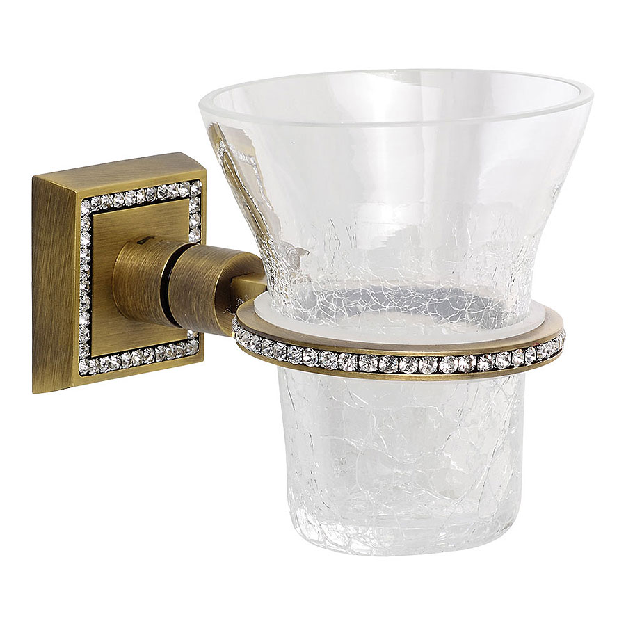 Стакан для зубных щеток настенный 3515-75-013 цвет состаренная латунь, узорчатое стекло, кристаллы Swarovski, латунь высота 108 мм