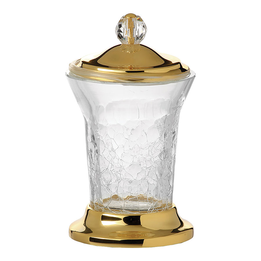 Стакан для зубных щеток эксклюзивная серия модель 3505-37-003 цвет глянцевое золото, узорчатое стекло, с крышкой с кристаллом материал латунь производство Турция.
