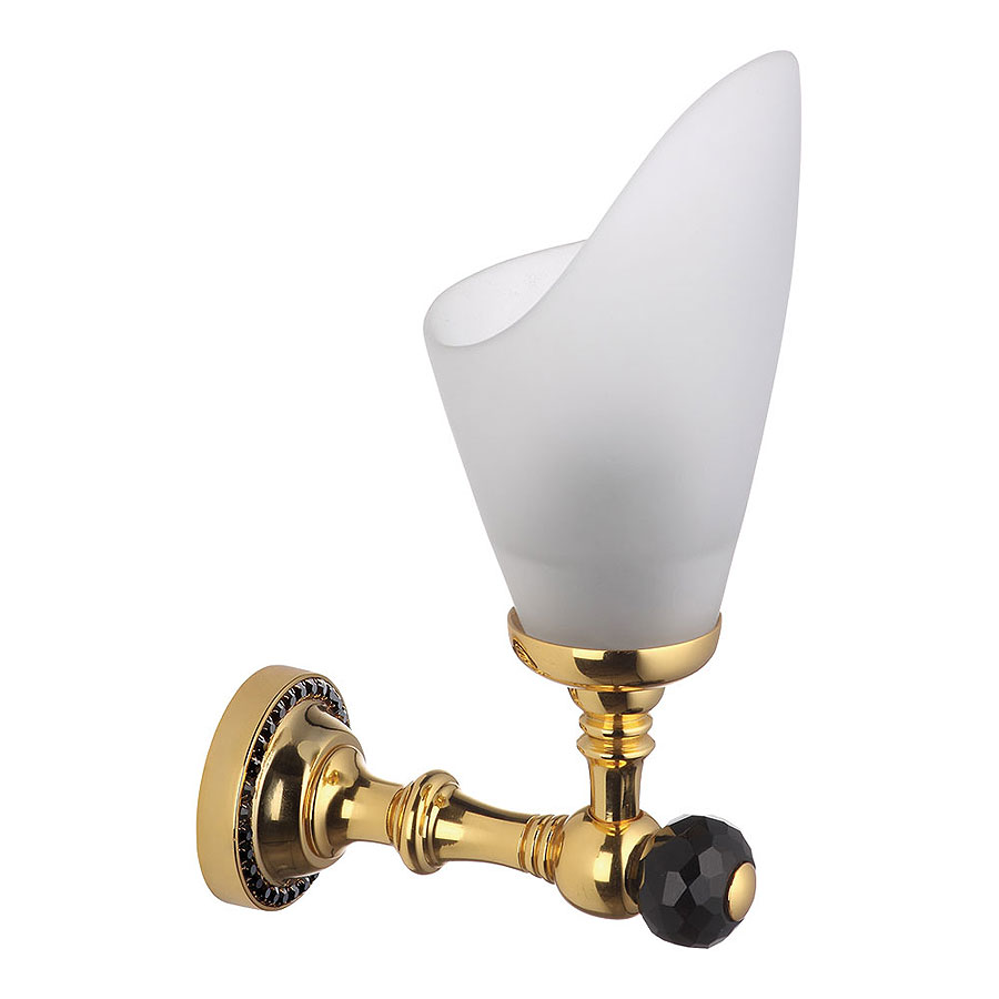 Светильник однорожковый 3502-71-320 цвет глянцевое золото, матовое стекло, черные кристаллы Swarovski, латунь