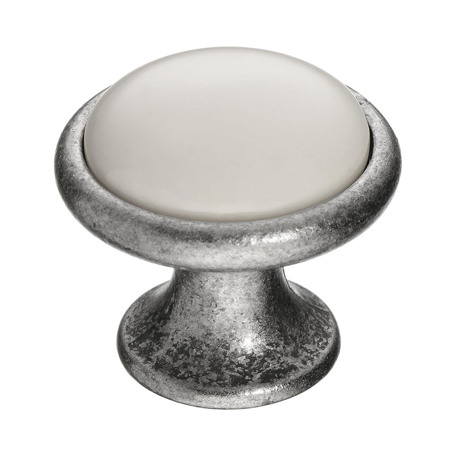 Ручка фарфор кнопка круглая 3008-80-000 старое серебро / белый диаметр 35 мм