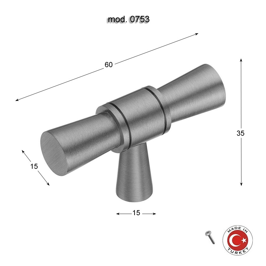 ручка, геометрия, кнопка, т-образная, 0753-011, латунь, сатин