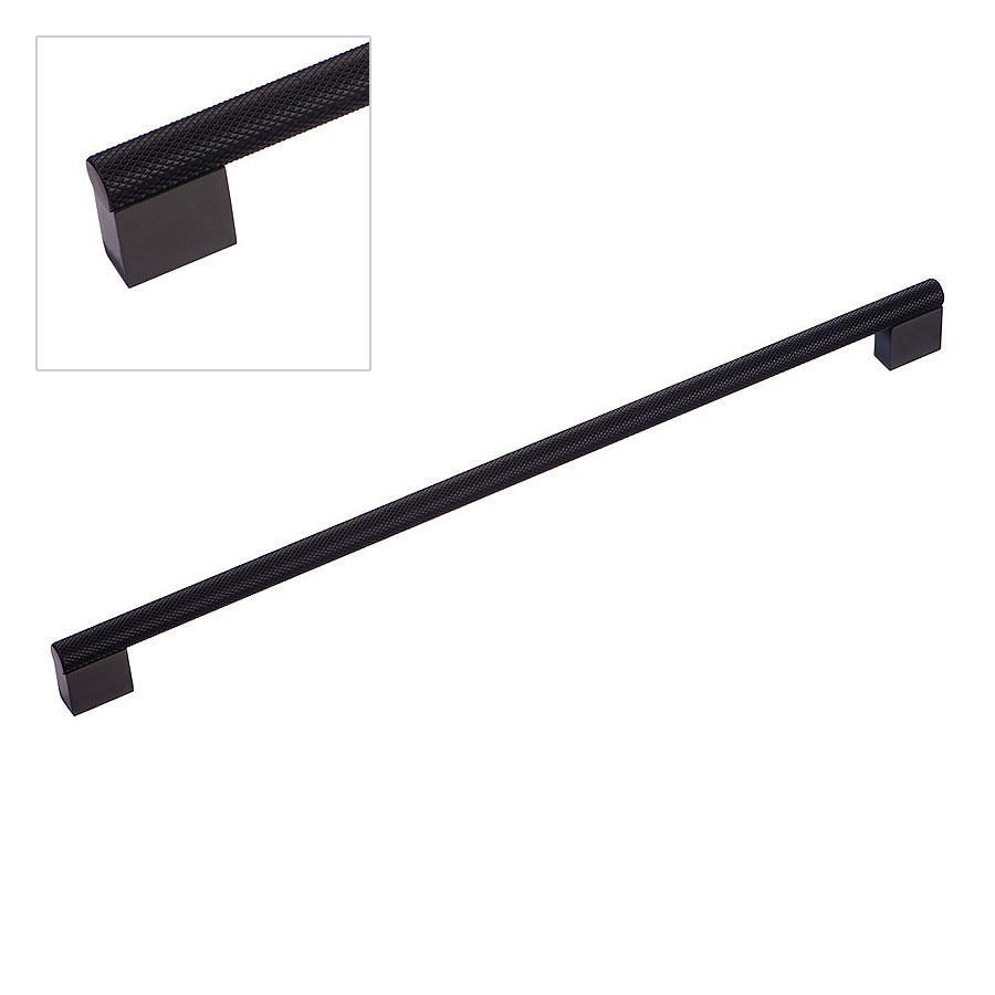 Мебельная ручка форма скоба цилиндр с насечкой коллекция Геометрия модель 8783 0352 BBN-BBN цвет черный матовый никель материал алюминий производство Турция. Длина: 385 мм Ширина: 12 мм Высота: 32 мм Межосевое расстояние между отверстиями под крепеж:..