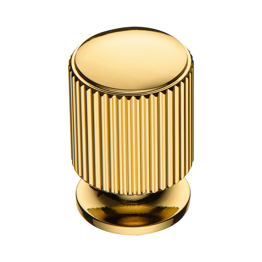 Мебельная ручка форма кнопка цилиндр с насечкой коллекция Модерн модель 1464 0026 GL отделка / цвет глянцевое золото материал алюминий производство Турция.