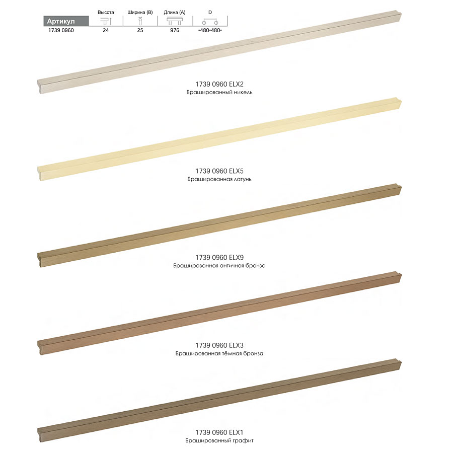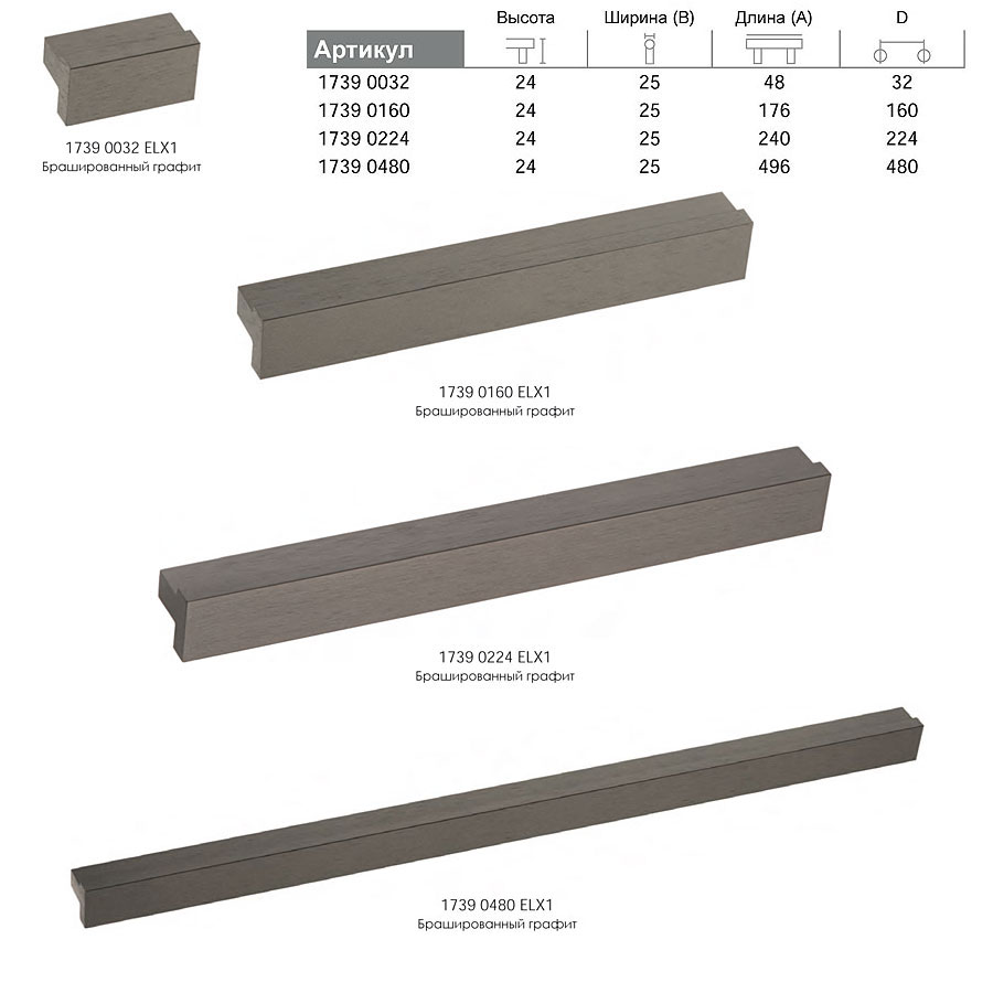мебельная, ручка, накладная, т-образная, профиль, 1739 0160 ELX1, брашированный, графит