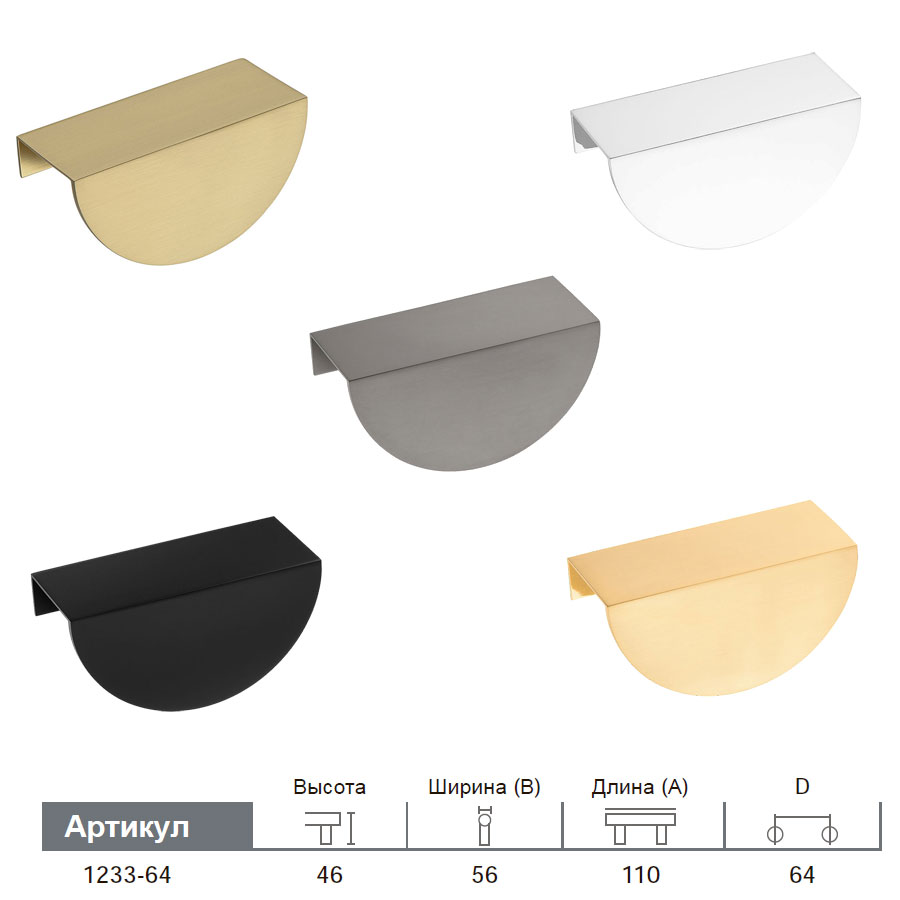 Мебельная ручка торцевая форма полукруглая Г-образная коллекция Профиль модель 1233-64-Titanium цвет графит материал цамак производство Турция.