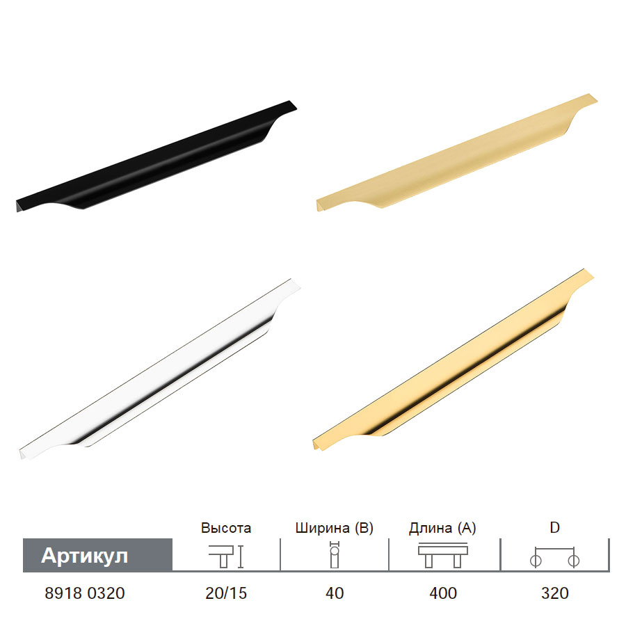 мебельная, ручка, торцевая, профиль, 8918 0320 GL, глянцевое, золото