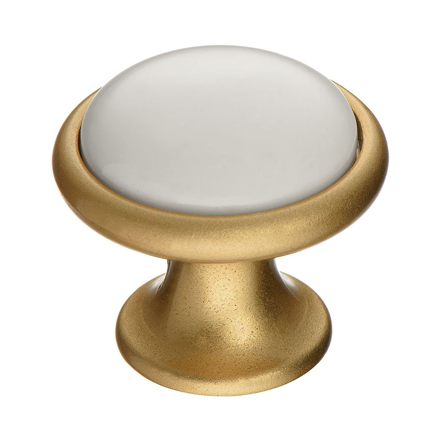 Мебельная ручка форма кнопка круглая коллекция Фарфор модель 3008-61-KREM диаметр 35 мм отделка металла матовое золото, керамика цвет кремовый производство Турция.