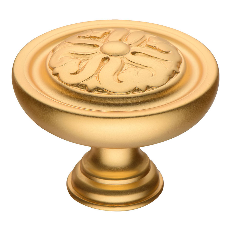 Мебельная ручка стиль классика форма кнопка круглая с орнаментом модель BU 009.50.22 цвет / отделка матовое золото материал цамак производство Италия.