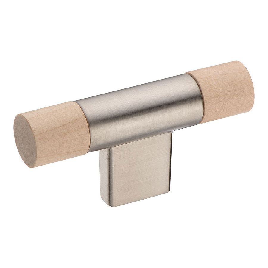 Ручка кнопка Т-образная 9400-317 цвет никель натуральное дерево длина 68 мм