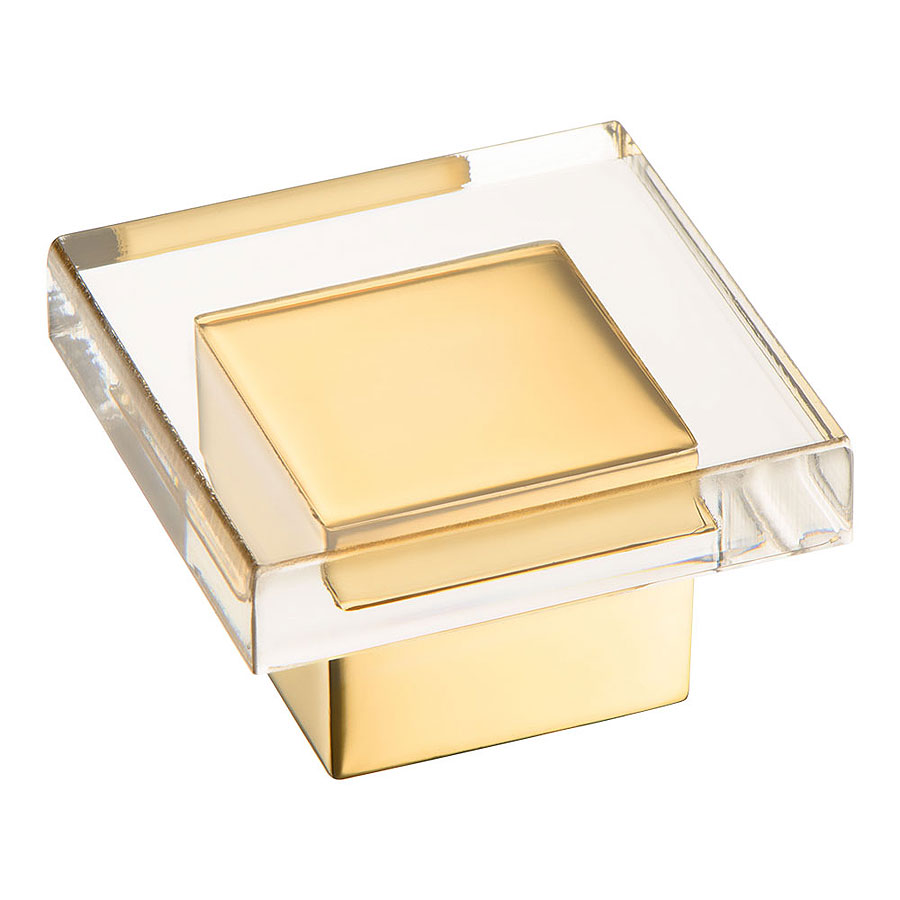 Мебельная ручка форма кнопка квадратная коллекция Модерн модель 15.383.40.19 цвет / отделка глянцевое золото, органическое стекло, материал цамак, производство Италия.