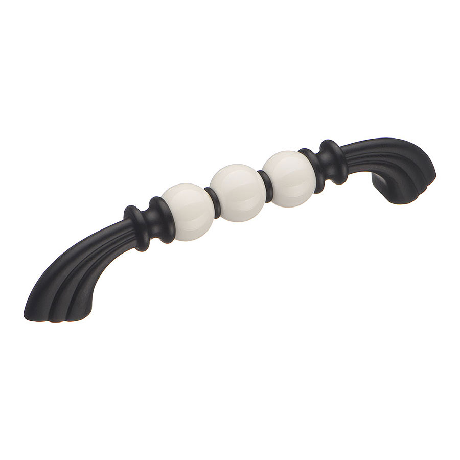 Ручка скоба 1885-85-128-000 цвет черный, белая керамика длина 160 мм, крепление 128 мм