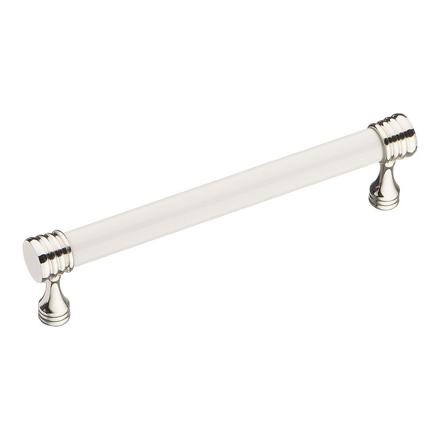 Ручка скоба 2131-51-128-000 цвет глянцевый никель, белая керамика длина 143 мм, крепление 128 мм
