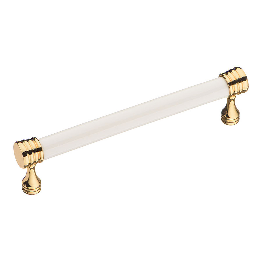 Ручка скоба 2131-69-128-000 цвет глянцевое золото, белая керамика длина 143 мм, крепление 128 мм
