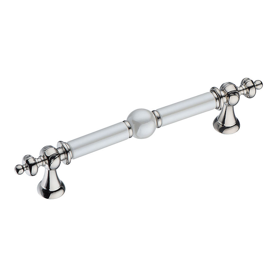 Мебельная ручка форма скоба коллекция Фарфор модель 2231-51-128-PEARL цвет глянцевый никель, перламутровая керамика материал цамак производство Турция.