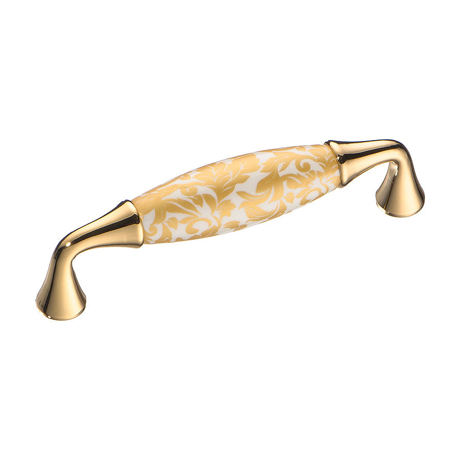 Мебельная ручка форма скоба коллекция Фарфор модель 2527-030-96-MILANO цвет глянцевое золото, белая керамика с рисунком материал латунь производство Турция.
