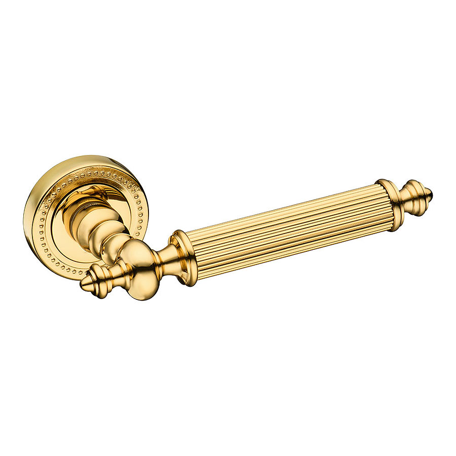 Дверная ручка нажимная рычажная на розетке модель 0212-003R цвет глянцевое золото материал латунь производство Турция.