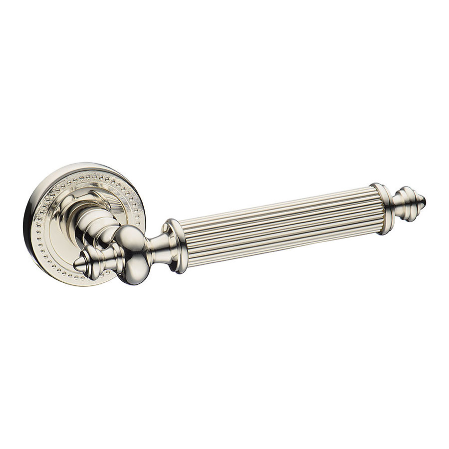 Дверная ручка нажимная рычажная на розетке модель 0212-016Y цвет глянцевый никель, в комплекте накладка под цилиндрическую личинку замка материал латунь производство Турция.