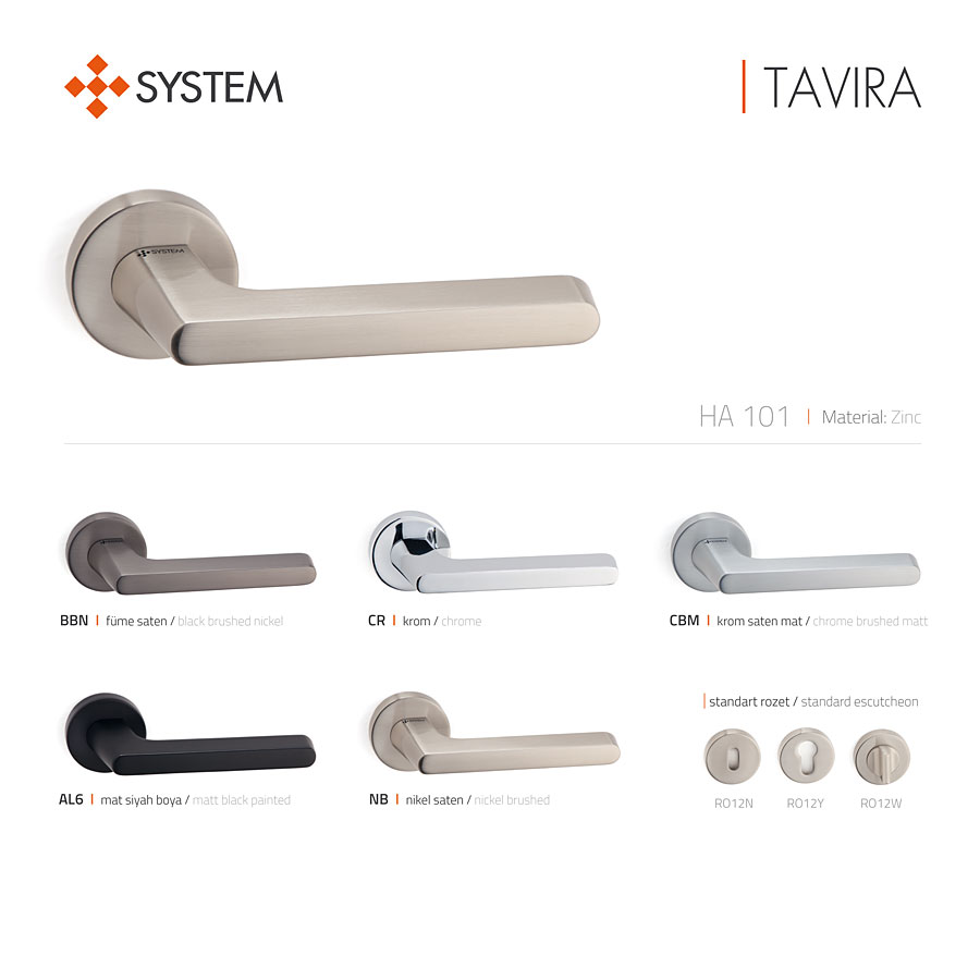 дверная, ручка, нажимная, рычажная, розетка, HA101RO12 NB TAVIRA, никель
