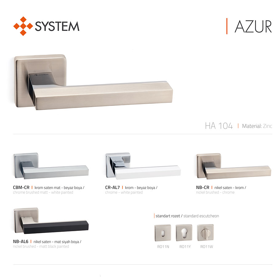 дверная, ручка, нажимная, рычажная, розетка, HA104RO11 NB-CR/NB AZUR, никель, глянцевый, хром