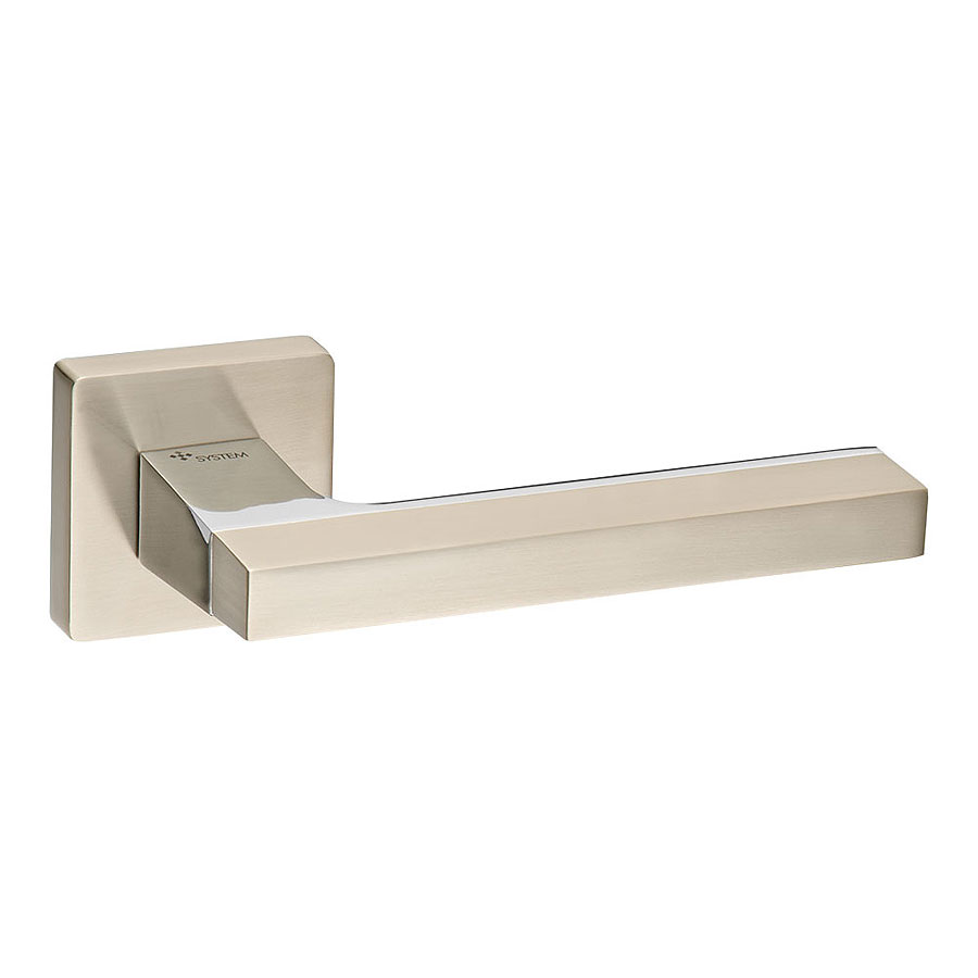Дверная ручка нажимная рычажная на розетке (фланец квадрат 8 мм) модель HA104RO11 NB-CR/NB AZUR цвет никель, глянцевый хром материал цамак производство Турция.