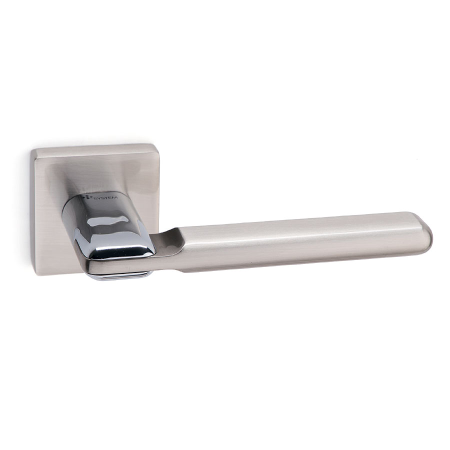 Дверная ручка нажимная рычажная на розетке (фланец квадрат 8 мм) модель HA108RO11 NB-CR/NB ONIKS цвет никель, глянцевый хром материал цамак производство Турция.