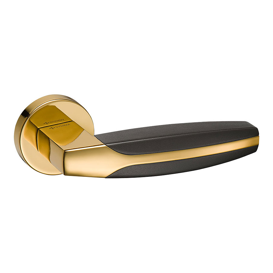 Дверная ручка нажимная рычажная на розетке (фланец квадрат 8 мм) модель HA114RO12 GL-GL/AL12 DIONE цвет глянцевое золото, коричневый материал цамак производство Турция.