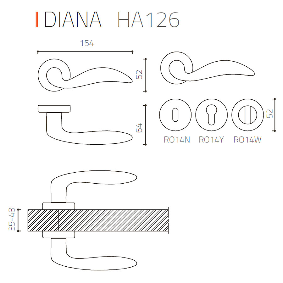 Дополнительно к ручкам можно приобрести накладки на личинку замка RO14N, RO14Y; накладки с поворотной кнопкой RO14W6