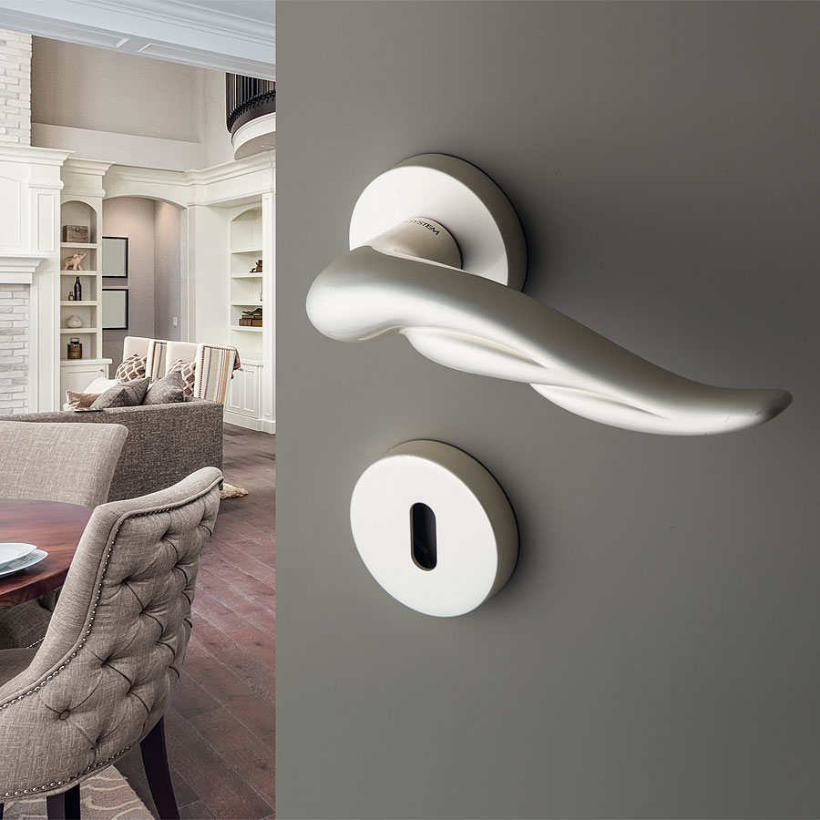 | форма: | дверная ручка нажимная рычажная; раздельная (комплект 2 штуки); на розетке |