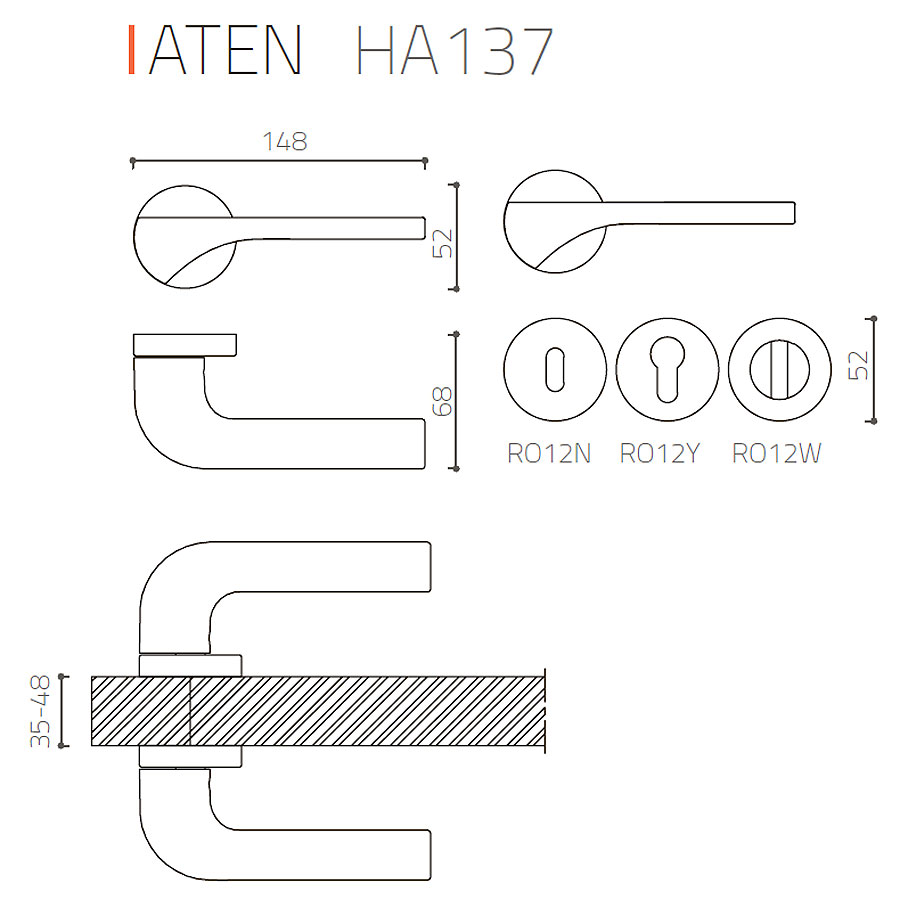 дверная, ручка, нажимная, рычажная, розетка, HA137RO12 CR ATEN, глянцевый, хром