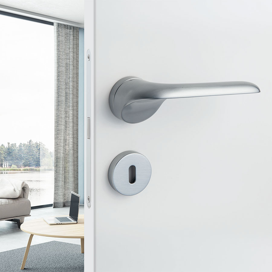 | форма: | дверная ручка нажимная рычажная; раздельная (комплект 2 штуки); на розетке |