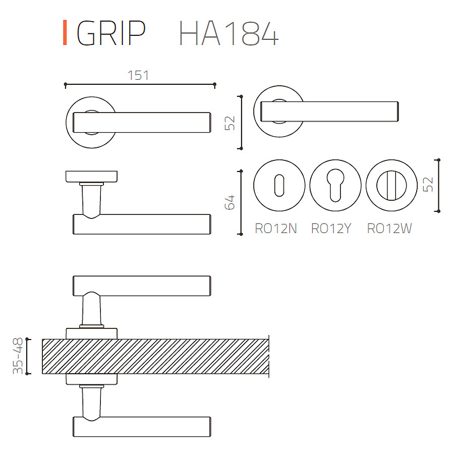 Дополнительно к ручкам можно приобрести накладки на личинку замка RO12N, RO12Y; накладки с поворотной кнопкой RO12W6