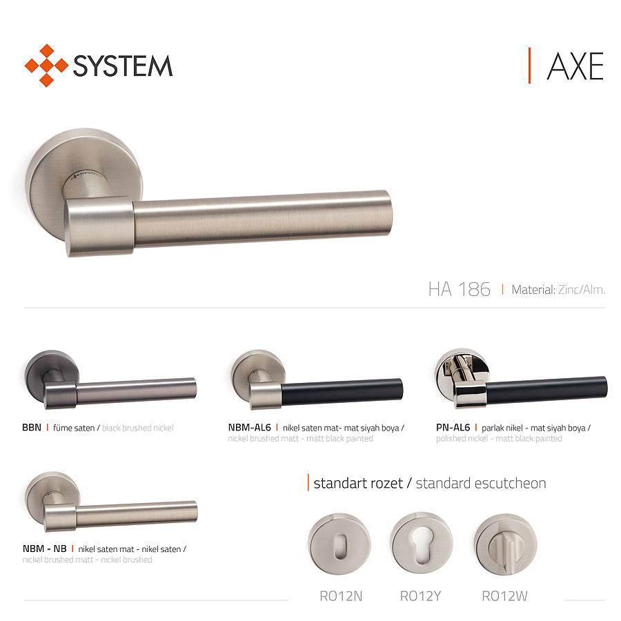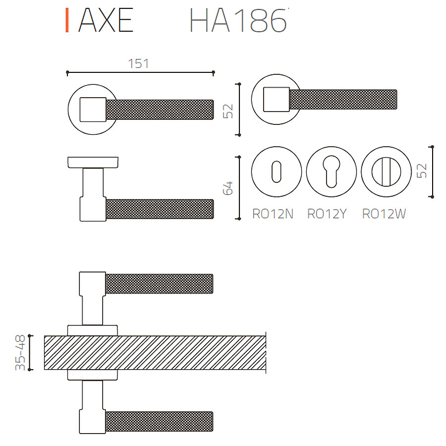 дверная, ручка, нажимная, рычажная, розетка, HA186RO12 GB-GB/AL6 AXE, матовая, латунь, черный