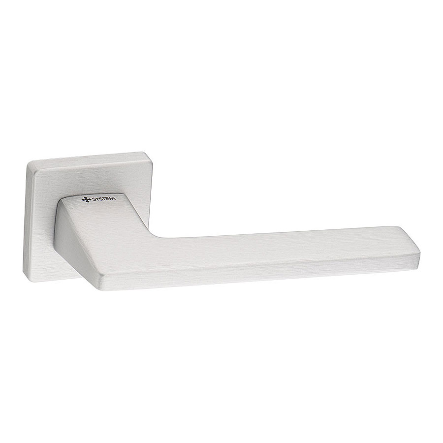 Дверная ручка нажимная рычажная на розетке (фланец квадрат 8 мм) модель HA194RO11 ELX10 ZETTA цвет брашированный алюминий материал цамак производство Турция.